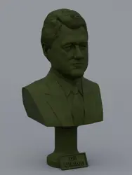 A traditional-style bust of Bill Clinton on a column pedestal. The bottom of the pedestal has a name plate.