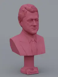A traditional-style bust of Bill Clinton on a column pedestal. The bottom of the pedestal has a name plate.