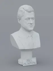 A traditional-style bust of Bill Clinton on a column pedestal. The bottom of the pedestal has a name plate.