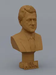 A traditional-style bust of Bill Clinton on a column pedestal. The bottom of the pedestal has a name plate.