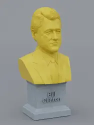 A traditional-style bust of Bill Clinton on a plinth pedestal. The plinth's front has a large name plate.