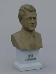 A traditional-style bust of Bill Clinton on a plinth pedestal. The plinth's front has a large name plate.