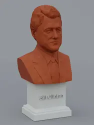 A traditional-style bust of Bill Clinton on a plinth pedestal. The plinth's front has a large name plate.
