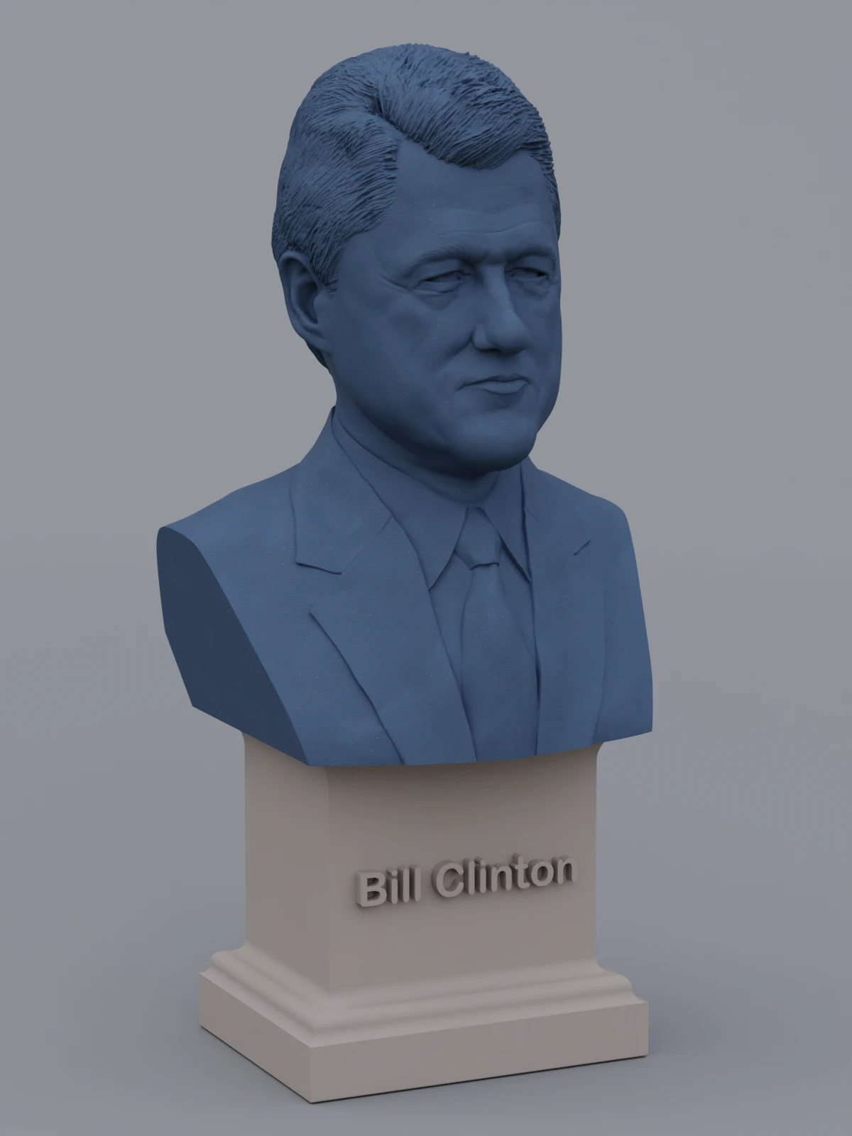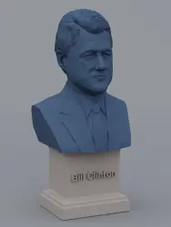 A traditional-style bust of Bill Clinton on a plinth pedestal. The plinth's front has a large name plate.