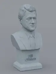A traditional-style bust of Bill Clinton on a plinth pedestal. The plinth's front has a large name plate.