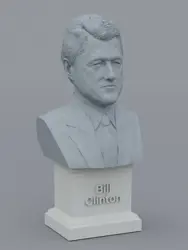 A traditional-style bust of Bill Clinton on a plinth pedestal. The plinth's front has a large name plate.