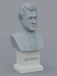 A traditional-style bust of Bill Clinton on a plinth pedestal. The plinth's front has a large name plate.