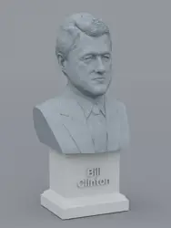 A traditional-style bust of Bill Clinton on a plinth pedestal. The plinth's front has a large name plate.