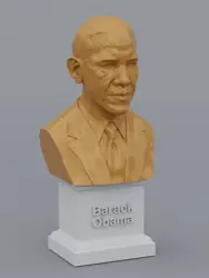 A traditional-style bust of Barack Obama on a plinth pedestal. The plinth's front has a large name plate.