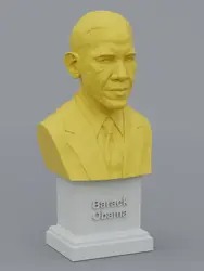 A traditional-style bust of Barack Obama on a plinth pedestal. The plinth's front has a large name plate.