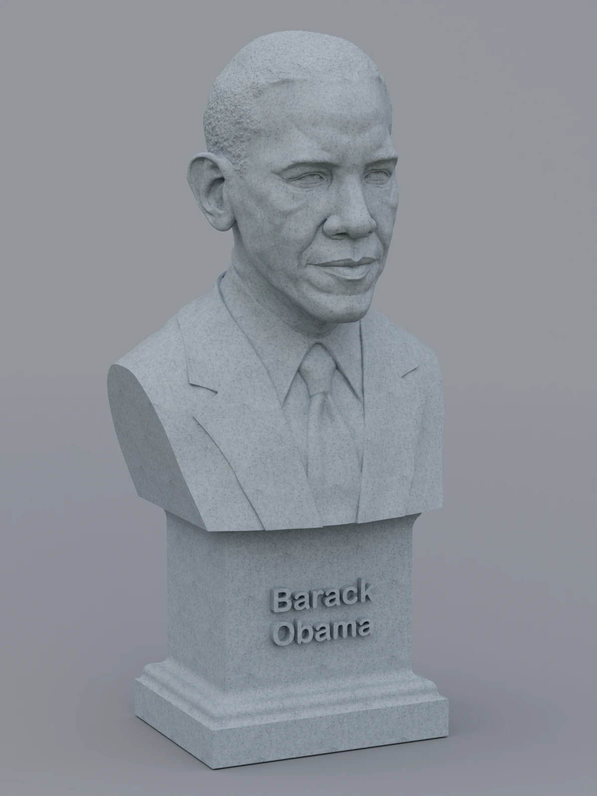 A traditional-style bust of Barack Obama on a plinth pedestal. The plinth's front has a large name plate.