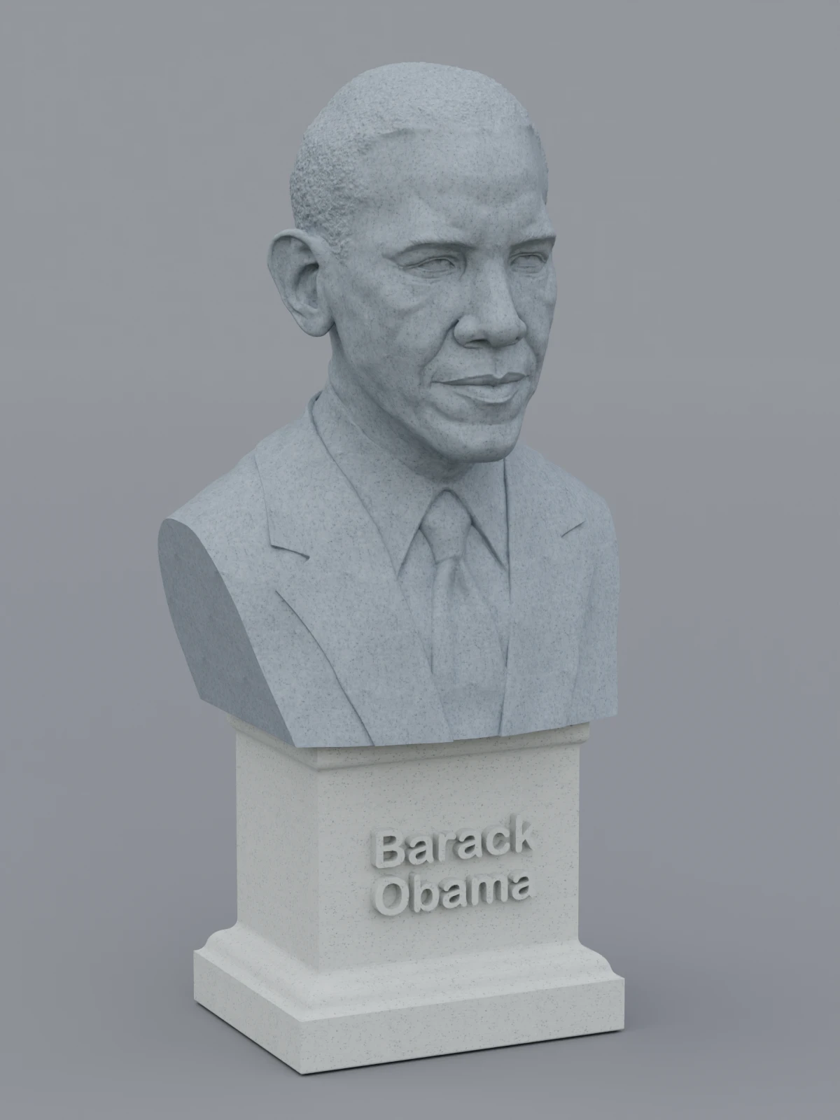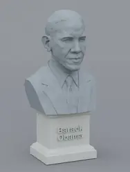 A traditional-style bust of Barack Obama on a plinth pedestal. The plinth's front has a large name plate.
