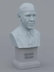 A traditional-style bust of Barack Obama on a plinth pedestal. The plinth's front has a large name plate.