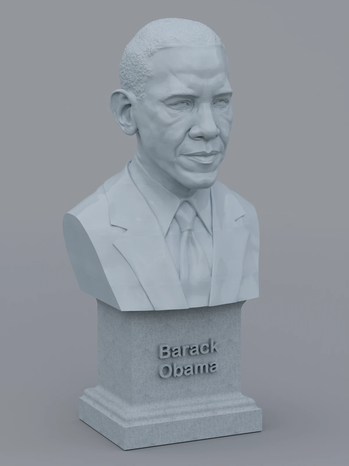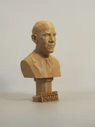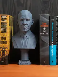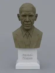 A traditional-style bust of Barack Obama on a plinth pedestal. The plinth's front has a large name plate.