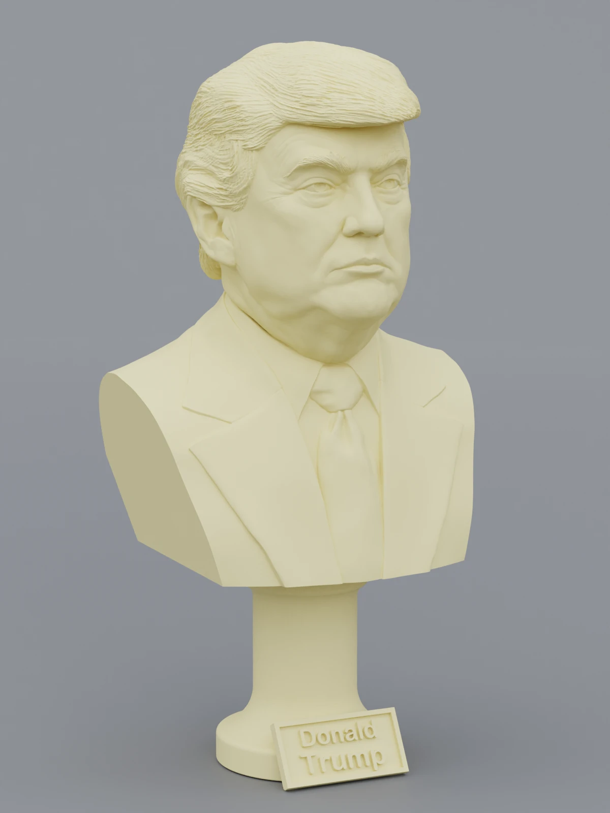 A traditional-style bust of Donald Trump on a column pedestal. The bottom of the pedestal has a name plate.