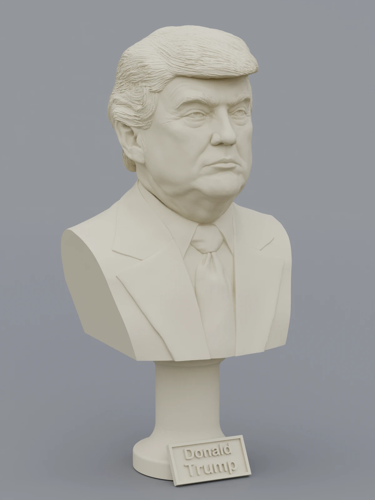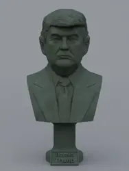 A traditional-style bust of Donald Trump on a column pedestal. The bottom of the pedestal has a name plate.