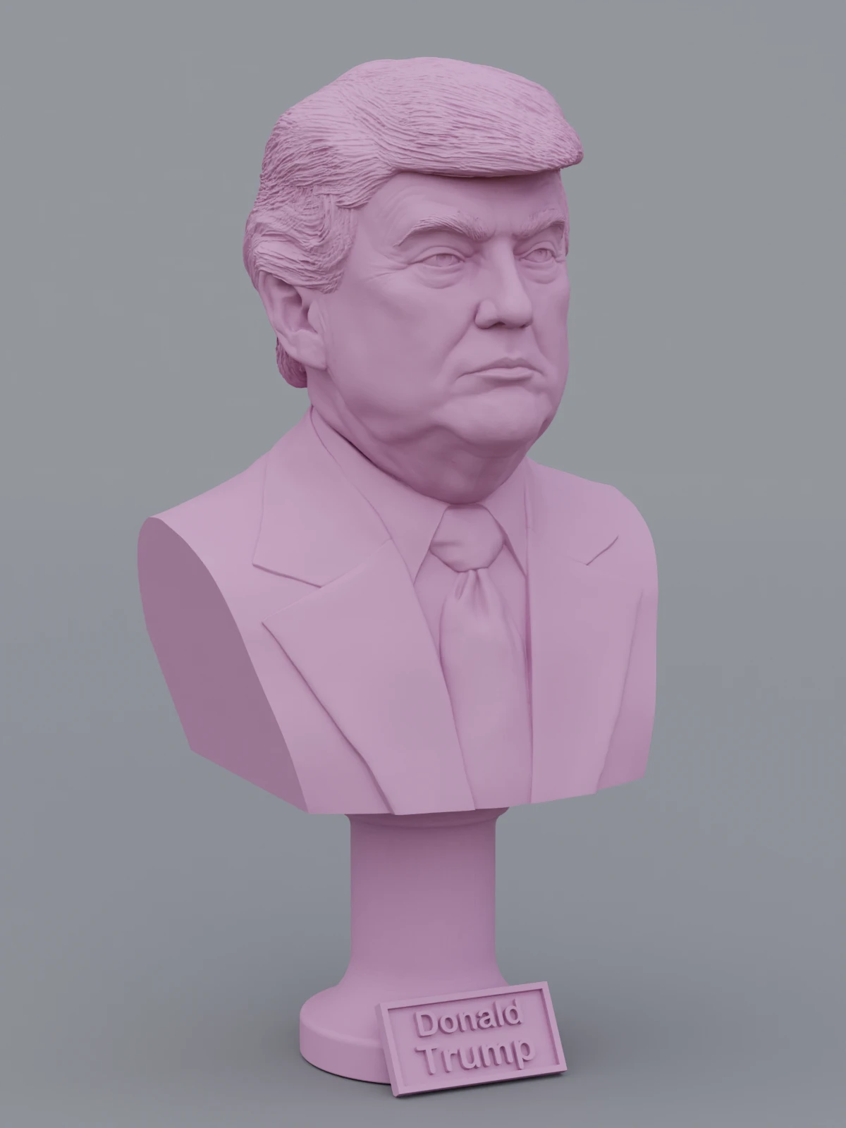 A traditional-style bust of Donald Trump on a column pedestal. The bottom of the pedestal has a name plate.