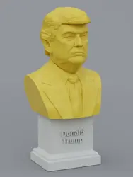 A traditional-style bust of Donald Trump on a plinth pedestal. The plinth's front has a large name plate.