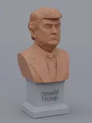 A traditional-style bust of Donald Trump on a plinth pedestal. The plinth's front has a large name plate.