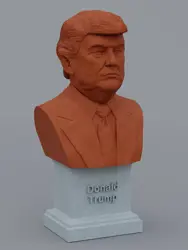 A traditional-style bust of Donald Trump on a plinth pedestal. The plinth's front has a large name plate.