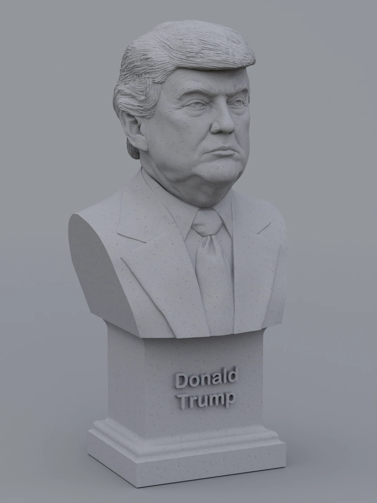 A traditional-style bust of Donald Trump on a plinth pedestal. The plinth's front has a large name plate.