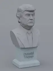 A traditional-style bust of Donald Trump on a plinth pedestal. The plinth's front has a large name plate.