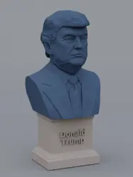 A traditional-style bust of Donald Trump on a plinth pedestal. The plinth's front has a large name plate.