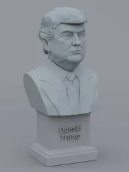 A traditional-style bust of Donald Trump on a plinth pedestal. The plinth's front has a large name plate.