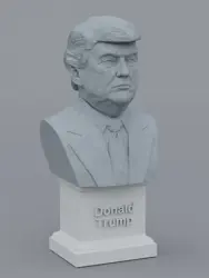 A traditional-style bust of Donald Trump on a plinth pedestal. The plinth's front has a large name plate.