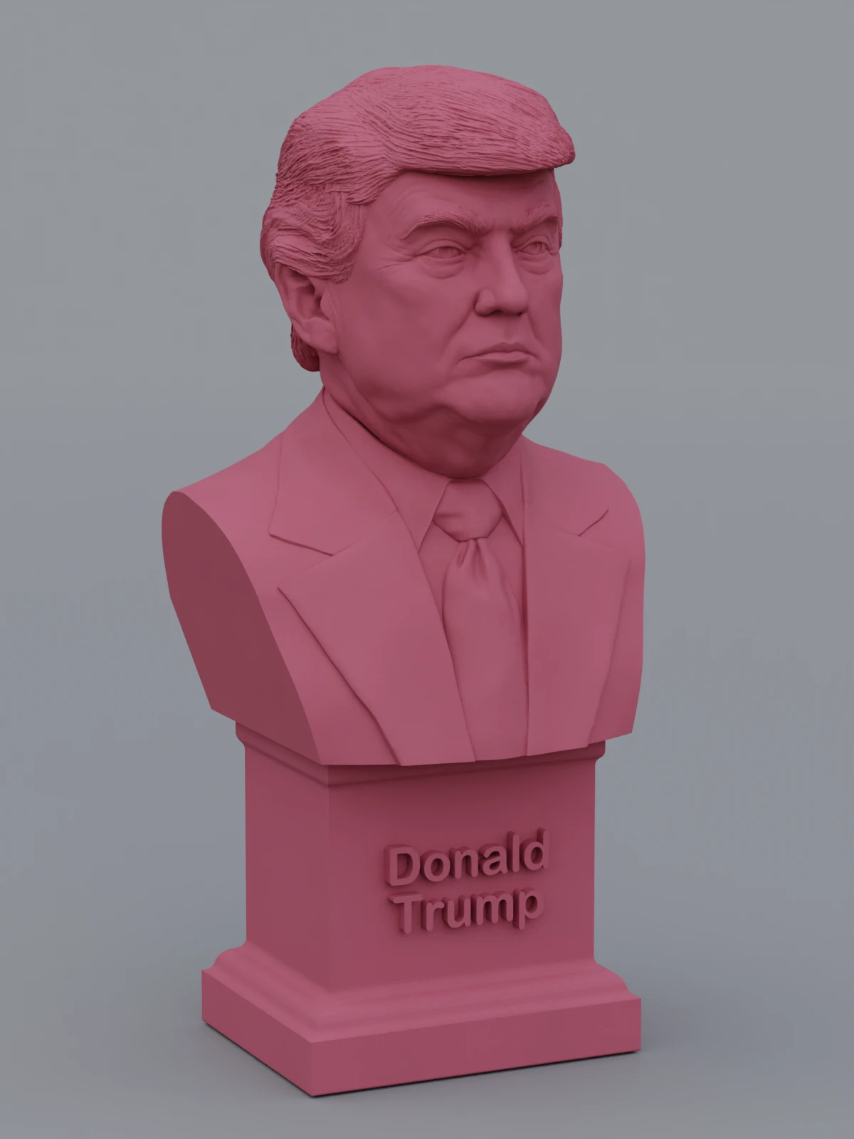 A traditional-style bust of Donald Trump on a plinth pedestal. The plinth's front has a large name plate.
