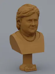 A traditional-style bust of Erna Solberg on a column pedestal. The bottom of the pedestal has a name plate.