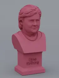 A traditional-style bust of Erna Solberg on a plinth pedestal. The plinth's front has a large name plate.