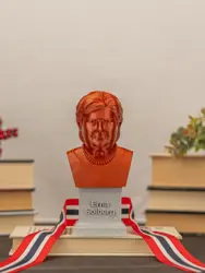 The bust and plinth are 3d-printed separately in different colors, using environmentally friendly bio-plastic.