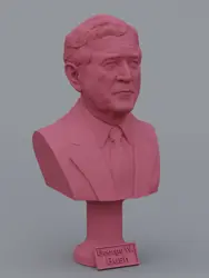 A traditional-style bust of George W Bush on a column pedestal. The bottom of the pedestal has a name plate.