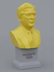 A traditional-style bust of George W Bush on a plinth pedestal. The plinth's front has a large name plate.