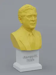 A traditional-style bust of George W Bush on a plinth pedestal. The plinth's front has a large name plate.