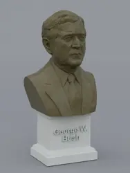 A traditional-style bust of George W Bush on a plinth pedestal. The plinth's front has a large name plate.