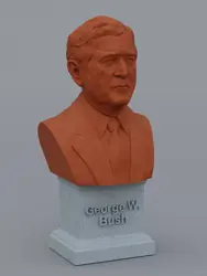A traditional-style bust of George W Bush on a plinth pedestal. The plinth's front has a large name plate.