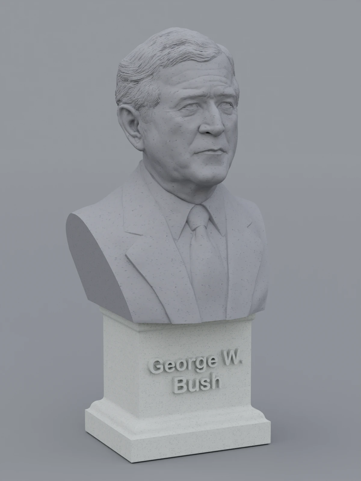 A traditional-style bust of George W Bush on a plinth pedestal. The plinth's front has a large name plate.