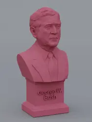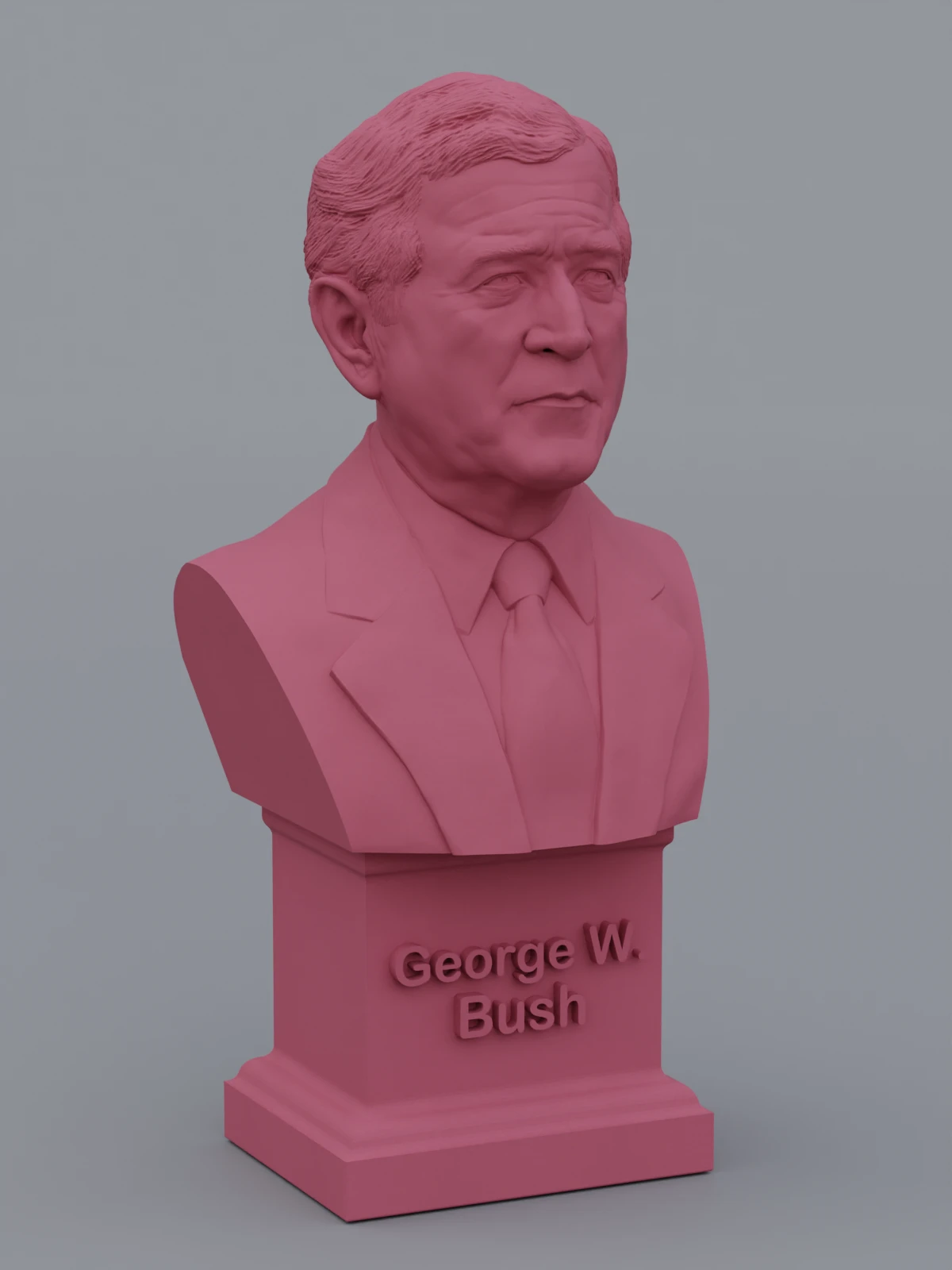 A traditional-style bust of George W Bush on a plinth pedestal. The plinth's front has a large name plate.