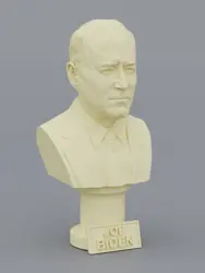 A traditional-style bust of Joe Biden on a column pedestal. The bottom of the pedestal has a name plate.