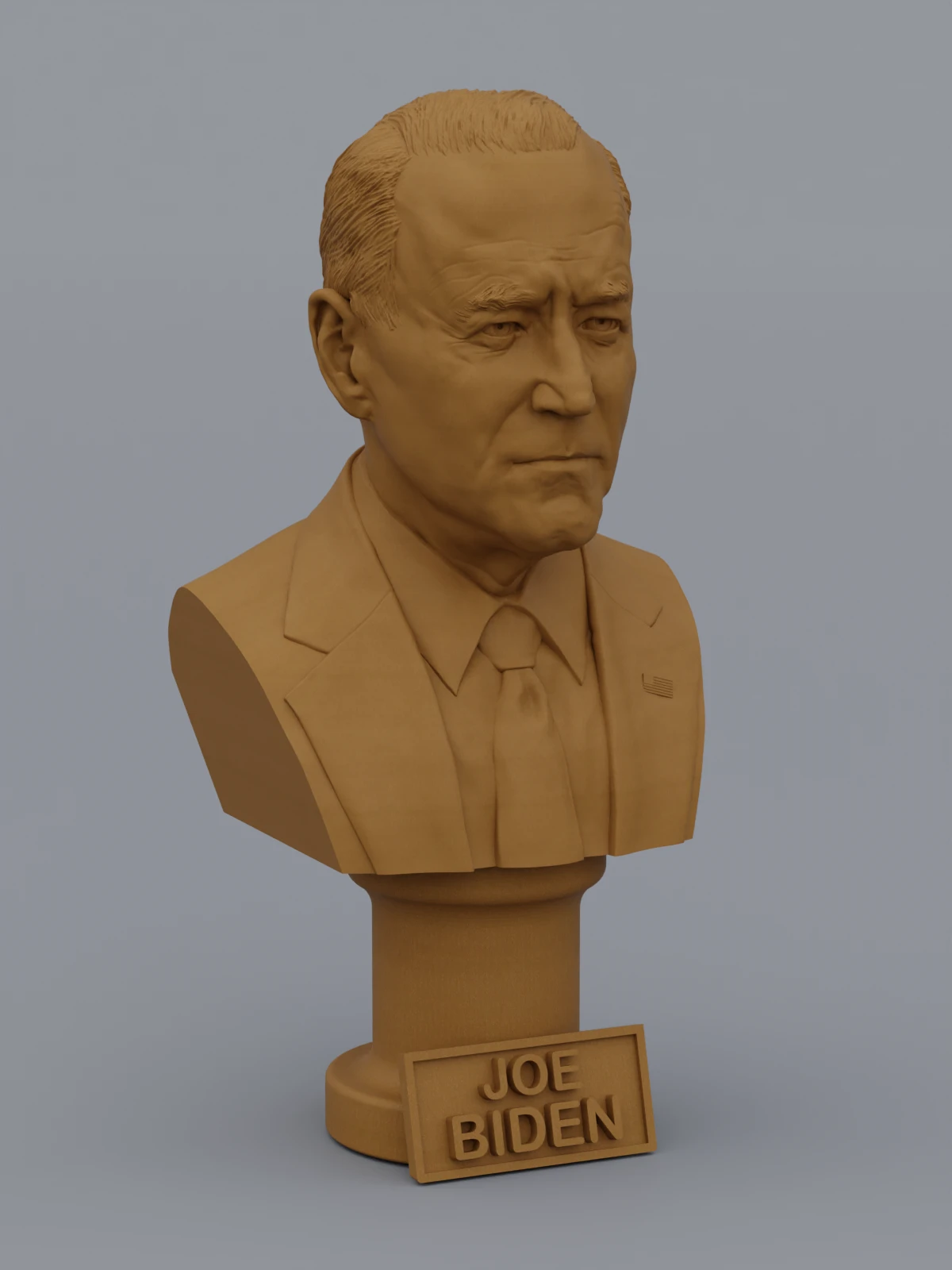 A traditional-style bust of Joe Biden on a column pedestal. The bottom of the pedestal has a name plate.