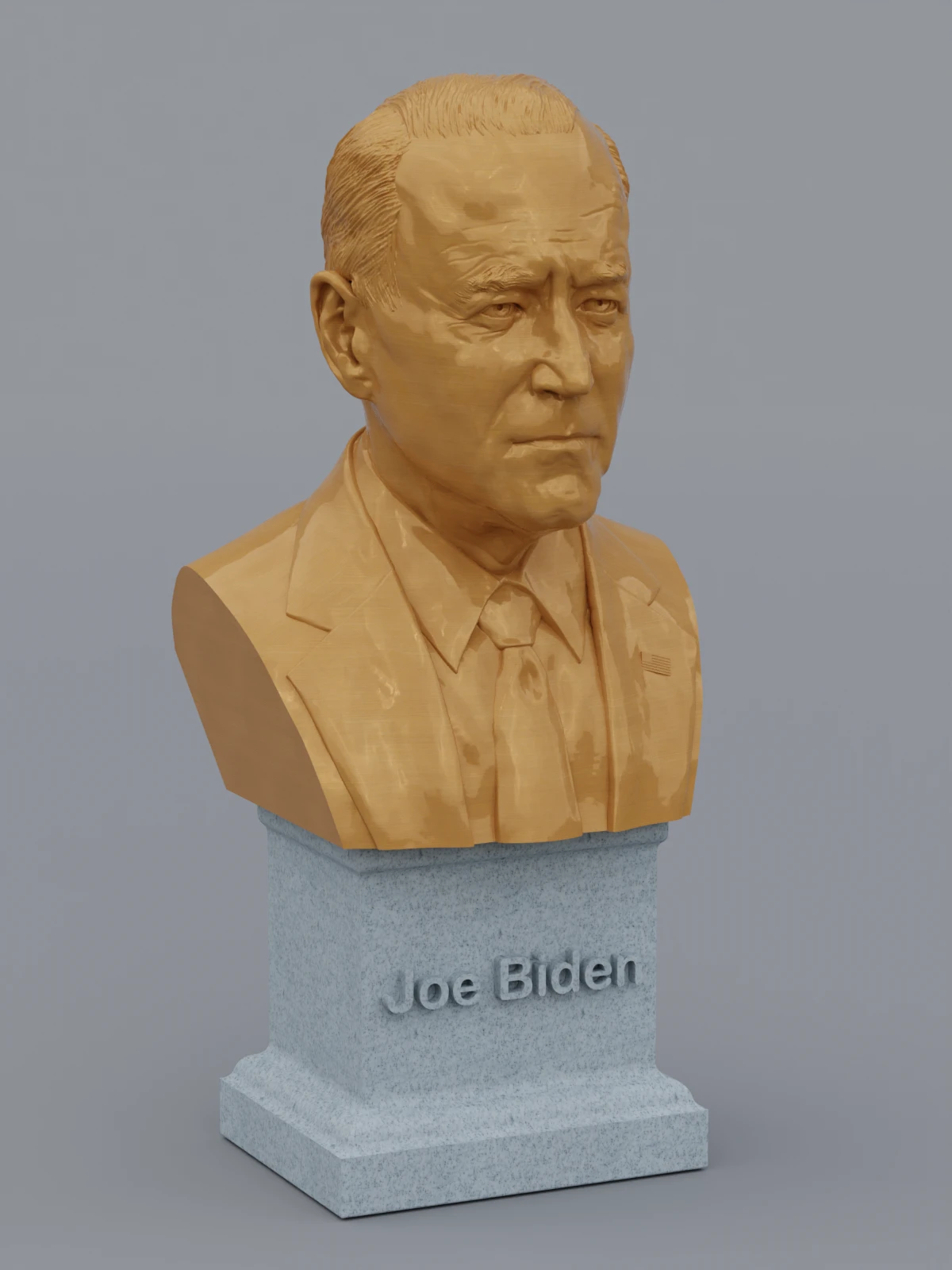 A traditional-style bust of Joe Biden on a plinth pedestal. The plinth's front has a large name plate.