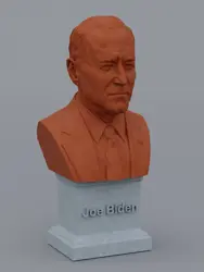 A traditional-style bust of Joe Biden on a plinth pedestal. The plinth's front has a large name plate.