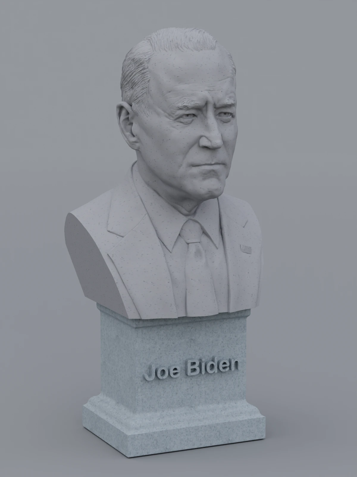 A traditional-style bust of Joe Biden on a plinth pedestal. The plinth's front has a large name plate.