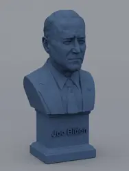 A traditional-style bust of Joe Biden on a plinth pedestal. The plinth's front has a large name plate.