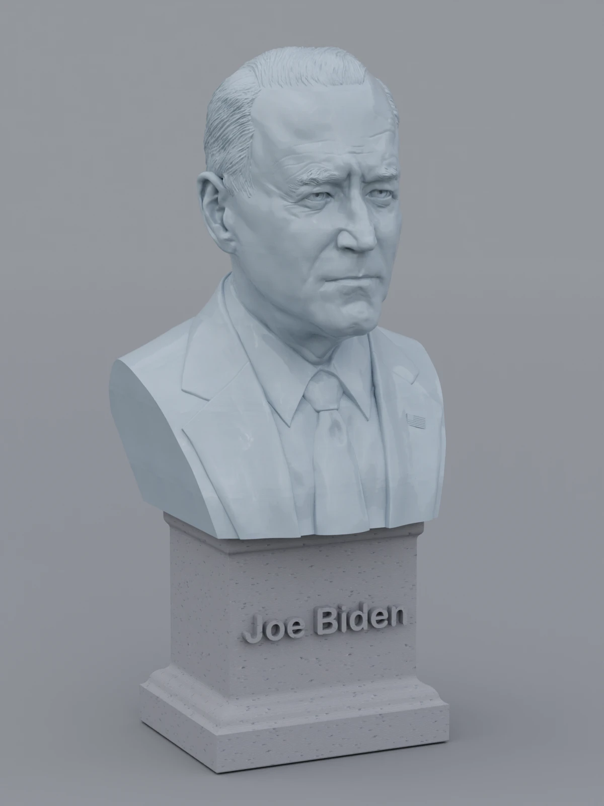 A traditional-style bust of Joe Biden on a plinth pedestal. The plinth's front has a large name plate.