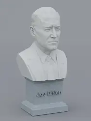 A traditional-style bust of Joe Biden on a plinth pedestal. The plinth's front has a large name plate.