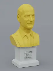 The bust and plinth are 3d-printed separately in different colors, using environmentally friendly bio-plastic.